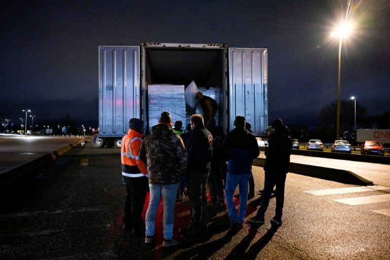 Au Havre, premier port français en trafic de conteneurs, des filtrages ont été mis en place avec des pneus en flamme, des troncs d'arbres et quelques tracteurs, a constaté un journaliste de l'AFP, sans bloquer l'activité portuaire: depuis ce week-end, les agriculteurs contrôlent les camions frigorifiques et vérifient la provenance des produits.