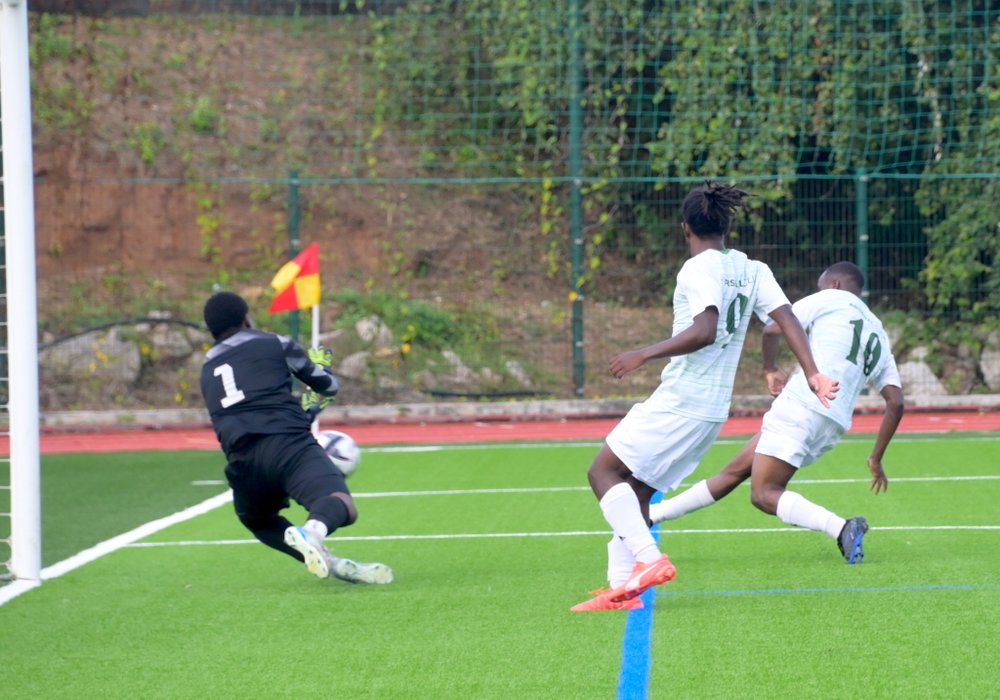 Casimir, côté droit, suivi d'un centre repris par Capraja que
