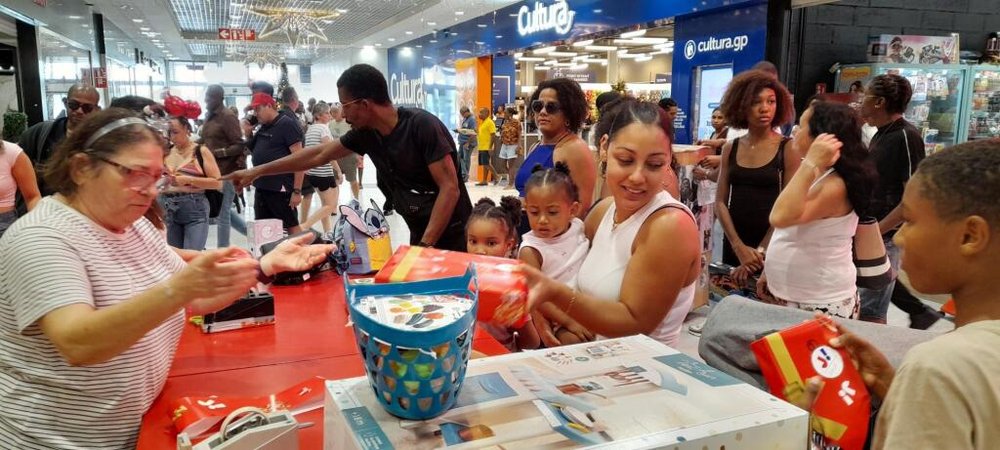 de dons pour l'achat de jouets. Des boîtes pour récolter les pièces