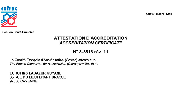 Le laboratoire Eurofins Labazur Guyane retrouve son accréditation
