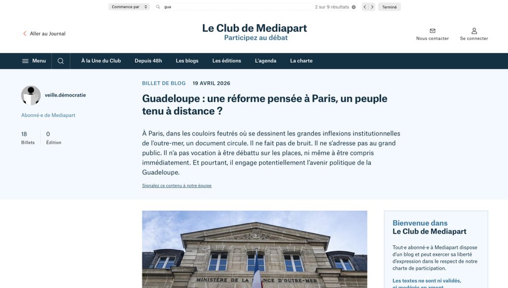 blog participatif de Mediapart. Intitulé « Guadeloupe :