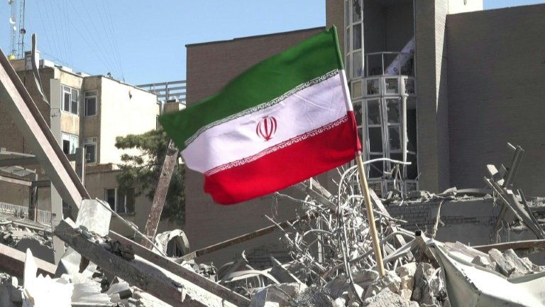L'un des principaux carrefours du centre-ville, la place Ferdowsi, est désormais bordée de bâtiments soufflés par les explosions. Un drapeau de la République islamique a été planté dans les gravats.
