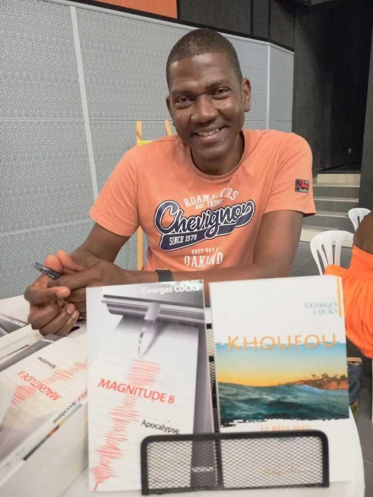 Avec Pawòl Maké Douvànjou, Yvèl Lubin travaille une langue créole ancrée dans l'oralité, attentive aux voix, aux silences et à ce qui se dit sur le ton de la confidence. Une écriture du lien tissé avec le fil de la mémoire, véritable matériau vivant. Face à l'écrivaine, Georges Cocks présentera Khoufou - Le Rêve Bleu, un récit poétique qui convoque l'ailleurs et le temps long. À travers la figure de Khoufou, l'auteur explore le monde onirique, la quête et la construction de soi. Le poète tente de relier l'intime au collectif.